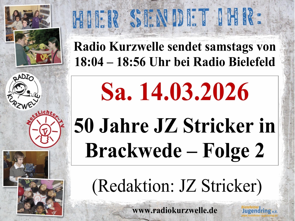 Kurzwelle sendet heute das zweite Mal aus einem der ältesten Jugendzentren in Bielefeld. Das JZ Stricker feierte 2025 sei 50-jähriges Bestehen. Kai Feltes ging als Jugendlicher selber ins Stricker und ist jetzt seit vielen Jahren hauptamtlicher Mitarbeiter. Für ihn ist die Arbeit im Stricker ein Traumjob. Auch die Meinungen der Kinder und Jugendlichen in Umfragen bestätigen, das das Stricker ein zweites Zuhause ist, wo man sein kann wie man ist. Die Reportage stellt euch heute den Kinderbereich im Stricker vor, denn in dem Jugendzentrum gibt es natürlich auch Kinder. Abschließend könnt im Kurzwelle-Quiz euer Wissen zum JZ Stricker testen.