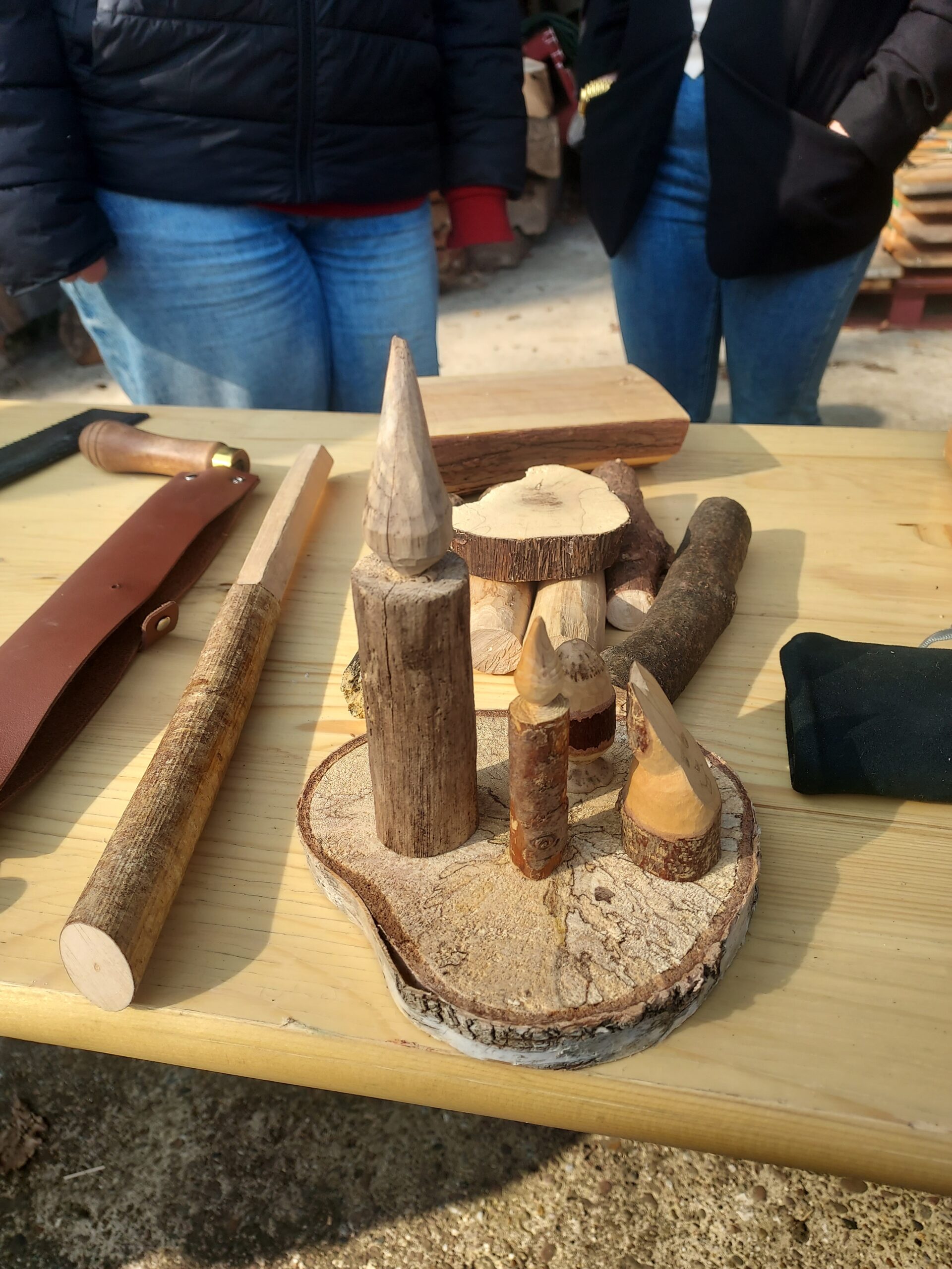 Anschließend ging es ans selber ausprobieren, und so entstanden Löffel, Kerzen, Hasen und sogar Speere und Bögen. Wir fanden´s super und bald gibt´s tolle Holz-Projekte in unseren Einrichtungen und Verbänden.